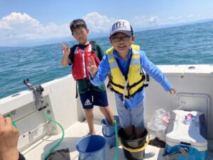 春休み、夏休み、冬休みには、子供たちともに海にでています。