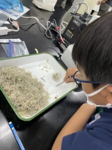 シラスと一緒に採れる生き物のこどもたちを、探し出すのです。
