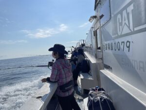 20名の参加者で、餌釣りの船と、ルアーでの釣り船とで、2隻で出船でした。